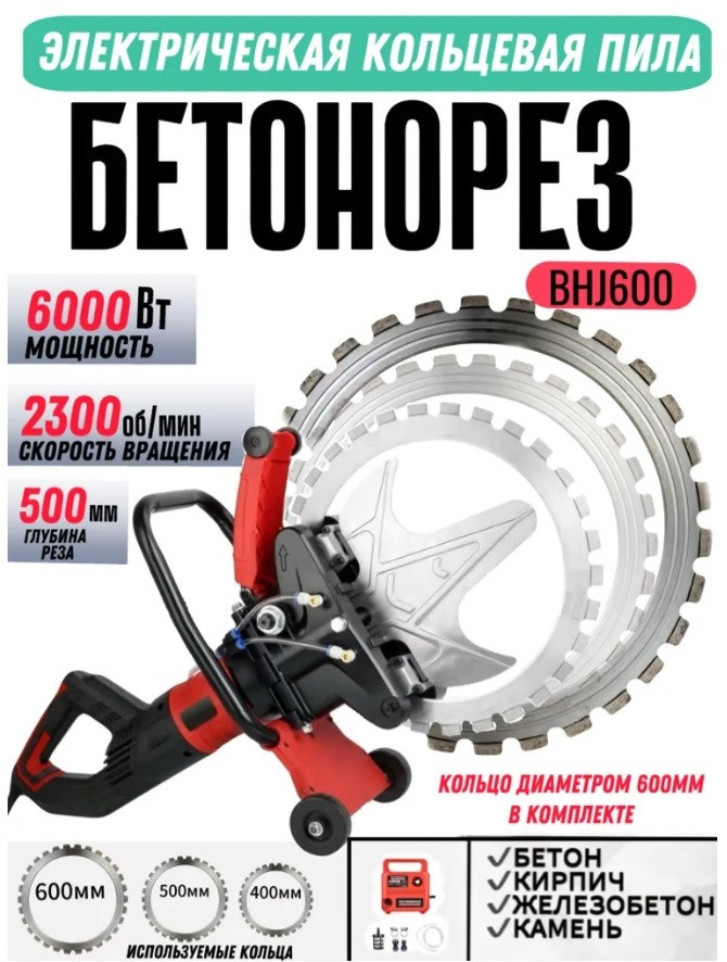 Бетонорез кольцевой сетевой бесщеточный BHJ600 для дисков 400,500,600мм